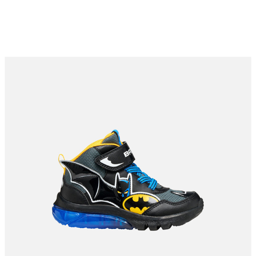 Sneaker bambino dal design sportivo e dinamico, dotata di luci integrate nella suola per un tocco di originalità e divertimento. In questa versione che mixa nero e giallo, Ciberdron è frutto della collaborazione tra Geox e Warner Bros, con dettagli ispirati al mondo di Batman sulla tomaia in materiale effetto pelle e mesh. Ciberdron è perfetta per outfit active dallo stile supereroistico, capace di accendere l'energia e l'immaginazione dei più piccoli.