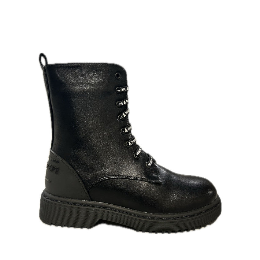 La suola in gomma garantisce comfort e stabilità, mentre la linea pulita e il finish lucido rendono l’anfibio perfetto per aggiungere un accento urbano e di tendenza a ogni look — dal denim al mini dress.