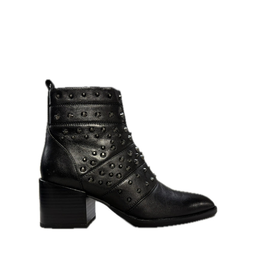 Grintoso, contemporaneo e ricercato: il tronchetto 3602G di Elvio Zanon è la scelta ideale per chi vuole unire stile deciso e qualità artigianale. Realizzato in pelle morbida, avvolge il piede con comfort e presenta eleganti borchie metalliche, che aggiungono carattere e un tocco rock-chic al design.