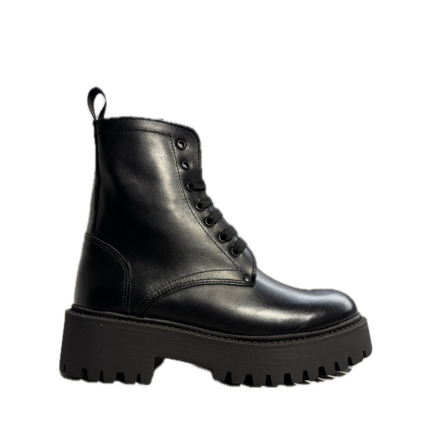 Un must-have dal carattere deciso: l’anfibio platform in pelle nera è la scelta perfetta per chi ama uno stile audace e contemporaneo.