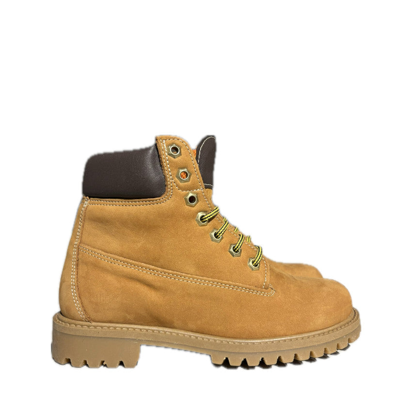 Robusto, versatile e intramontabile: questo anfibio in pelle scamosciata color senape è il compagno ideale per affrontare ogni stagione con stile e funzionalità. Realizzato con materiali di alta qualità, presenta una tomaia in vera pelle scamosciata resistente all'usura, una suola carrarmato in gomma antiscivolo e una comoda imbottitura alla caviglia in tessuto tecnico per un comfort ottimale durante tutto il giorno.