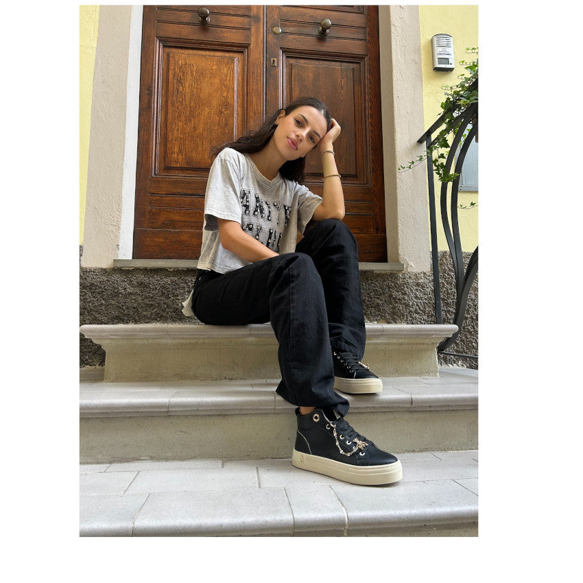 PATRIZIA PEPE SNEAKERS ALTA PJ901.31 VITELLO NERO-PLATINO