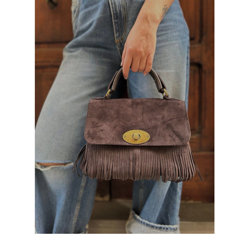 Un mix perfetto di carattere e femminilità, questa borsa in pelle e camoscio con frange è l’accessorio ideale per chi ama distinguersi con stile. Le frange decorative donano movimento e un tocco boho-chic, mentre i materiali pregiati — pelle liscia e camoscio — garantiscono resistenza, morbidezza e un’eleganza naturale.