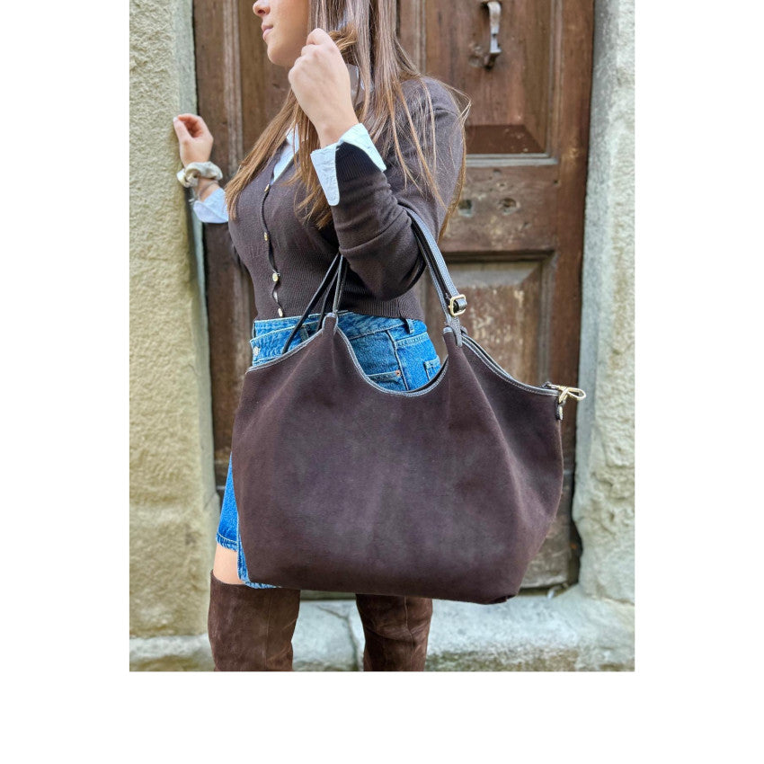 RINEO BORSA CON MANICI E TRACOLLA CAMOSCIO TESTA DI MORO