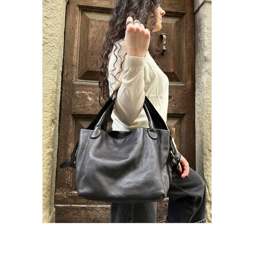 Design essenziale, anima sofisticata: la nostra borsa in pelle morbida è l’accessorio ideale per affrontare le giornate con stile e praticità. I manici comodi permettono un portamento elegante a mano o a braccio, mentre la tracolla regolabile e removibile la rende perfetta anche a spalla o crossbody.