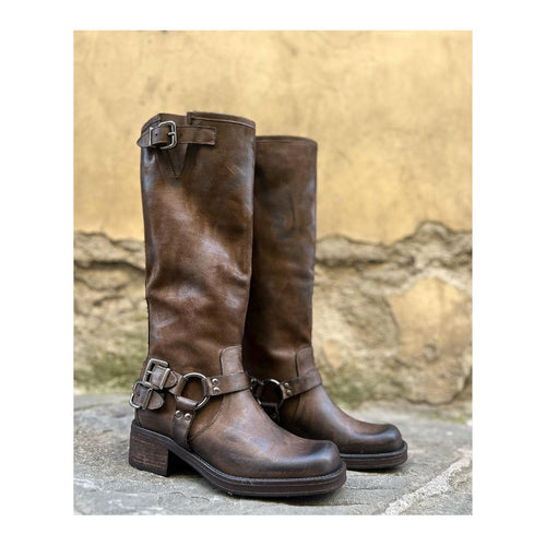MADE IN ITALY STIVALE ALTO CON FIBBIE CAMP 1 TESTA DI MORO