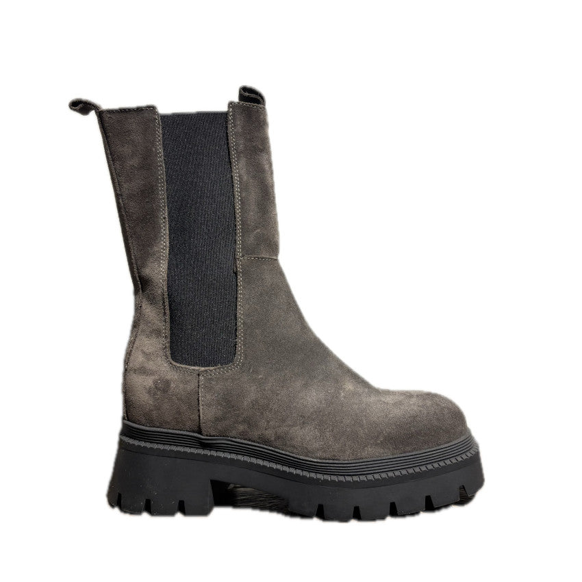 Grintoso e di tendenza, questo combat boot da donna in camoscio è la scelta perfetta per chi ama uno stile urbano ma raffinato. La suola carrarmato dona carattere e stabilità, assicurando comfort e aderenza in ogni passo.