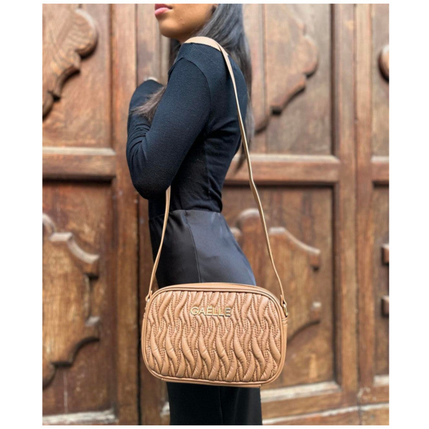 GAELLE BORSA GAACW01154 MINI CAMERA BAG CAMMELLO LOGO IN METALLO