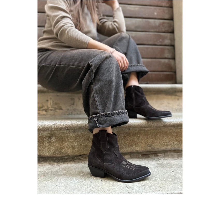 Grintoso, versatile e incredibilmente raffinato: il nostro Camperos basso in camoscio testa di moro è il dettaglio che fa la differenza. Realizzato in morbido camoscio, dal caratteristico colore testa di moro, questo stivaletto fonde il fascino western con il gusto contemporaneo.